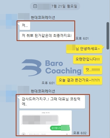 바로코칭을 통해 합격한 수강생들의 실제 문자/카톡 후기를 모았습니다.