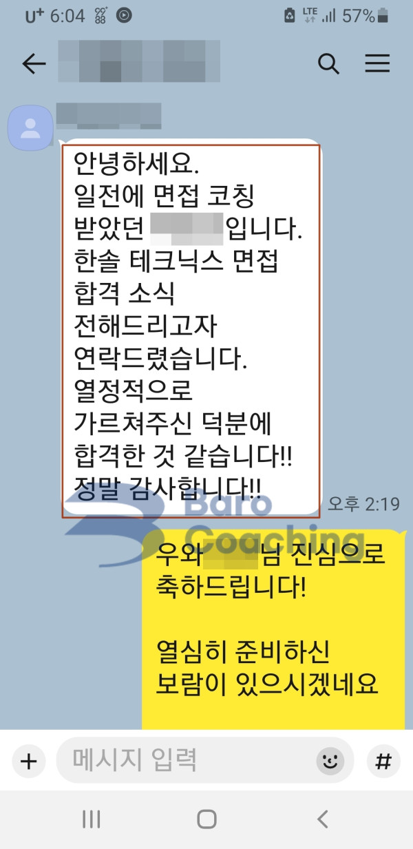 바로코칭을 통해 합격한 수강생들의 실제 문자/카톡 후기를 모았습니다.