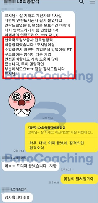 바로코칭에서 컨설팅 받은 학생의 한국국토정보공사 면접 합격 후기입니다.