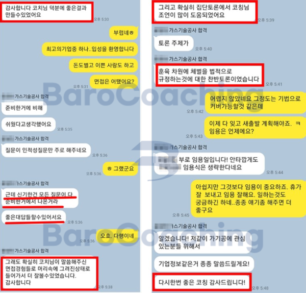 바로코칭을 통해 합격한 수강생들의 실제 문자/카톡 후기를 모았습니다.