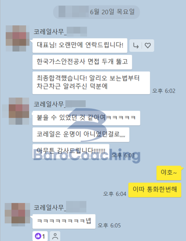바로코칭을 통해 합격한 수강생들의 실제 문자/카톡 후기를 모았습니다.