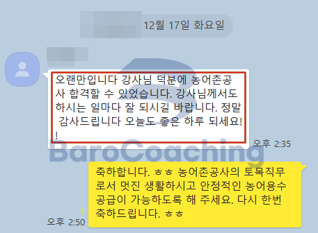 바로코칭을 통해 합격한 수강생들의 실제 문자/카톡 후기를 모았습니다.
