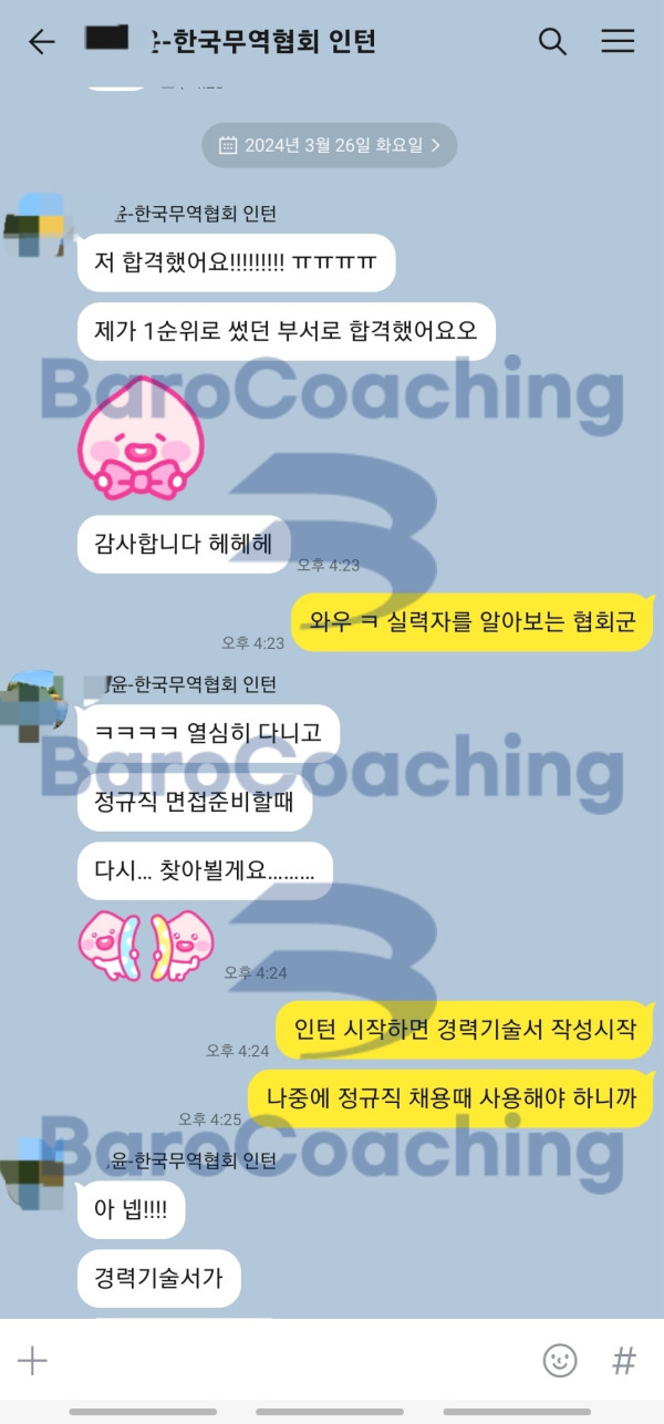 바로코칭에서 컨설팅 받은 학생의 한국무역협회 면접 합격 후기입니다.