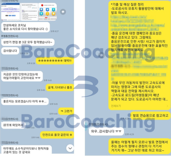 바로코칭을 통해 합격한 수강생들의 실제 문자/카톡 후기를 모았습니다.