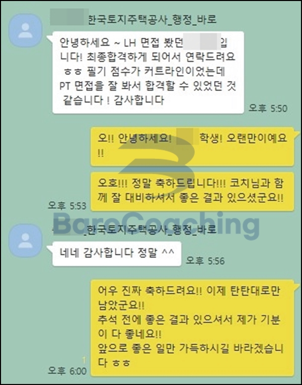 바로코칭에서 컨설팅 받은 학생의 한국토지주택공사 면접 합격 후기입니다.