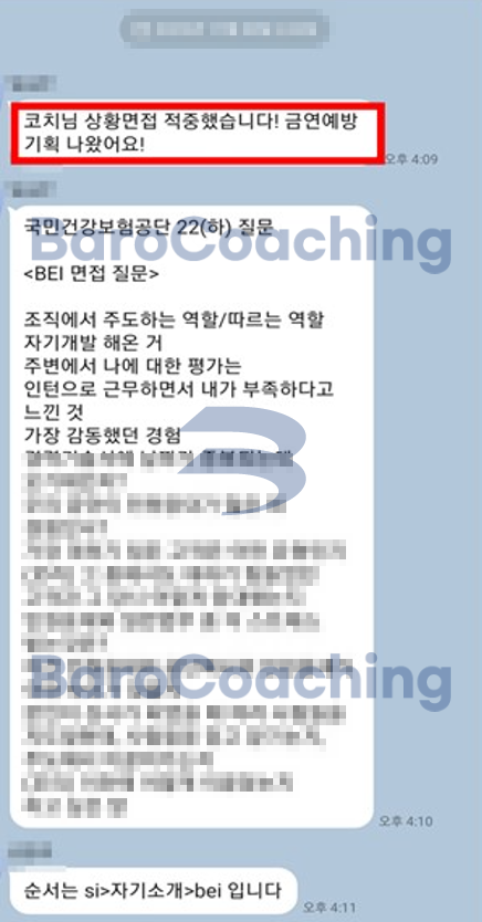 바로코칭에서 컨설팅 받은 학생의 [국민건강보험공단(건보) 면접 합격 후기입니다.