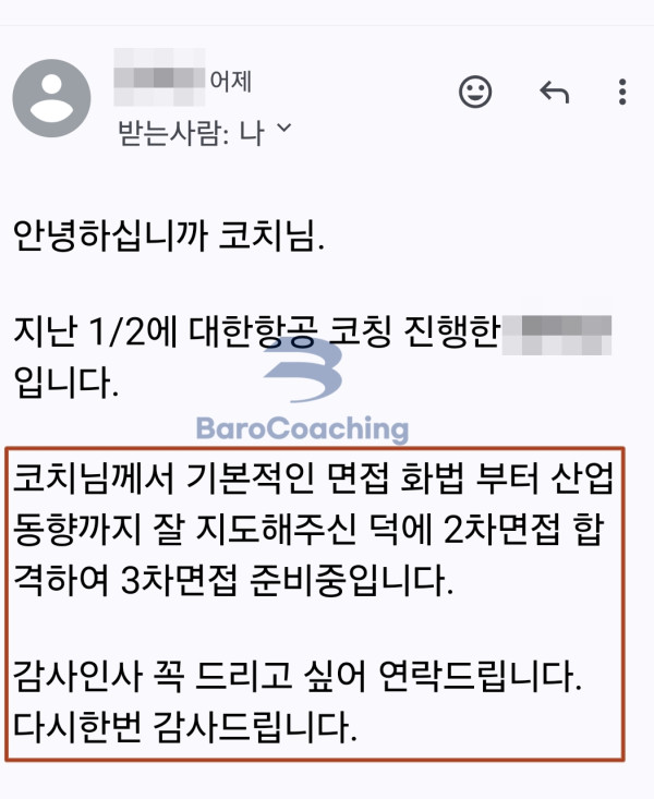 바로코칭에서 컨설팅 받은 학생의 대한항공 면접 합격 후기입니다.