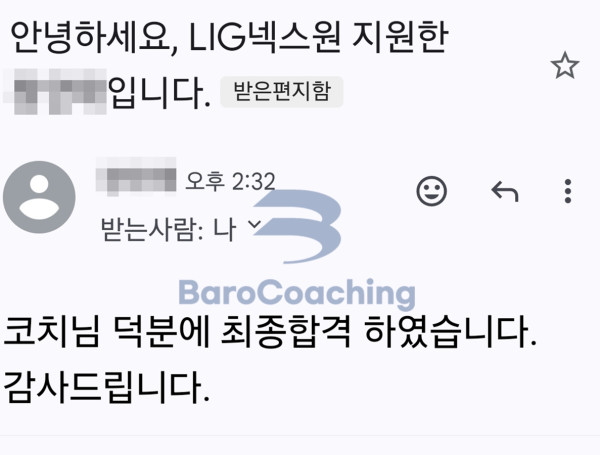바로코칭에서 컨설팅 받은 학생의 LIG넥스원 면접 합격 후기입니다.