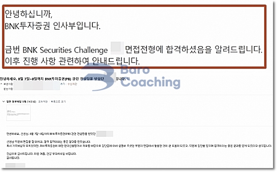 바로코칭에서 컨설팅 받은 학생의 BNK투자증권 면접 합격 후기입니다.