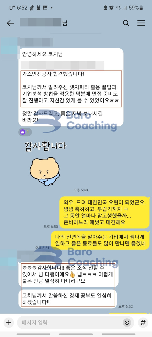 바로코칭을 통해 합격한 수강생들의 실제 문자/카톡 후기를 모았습니다.